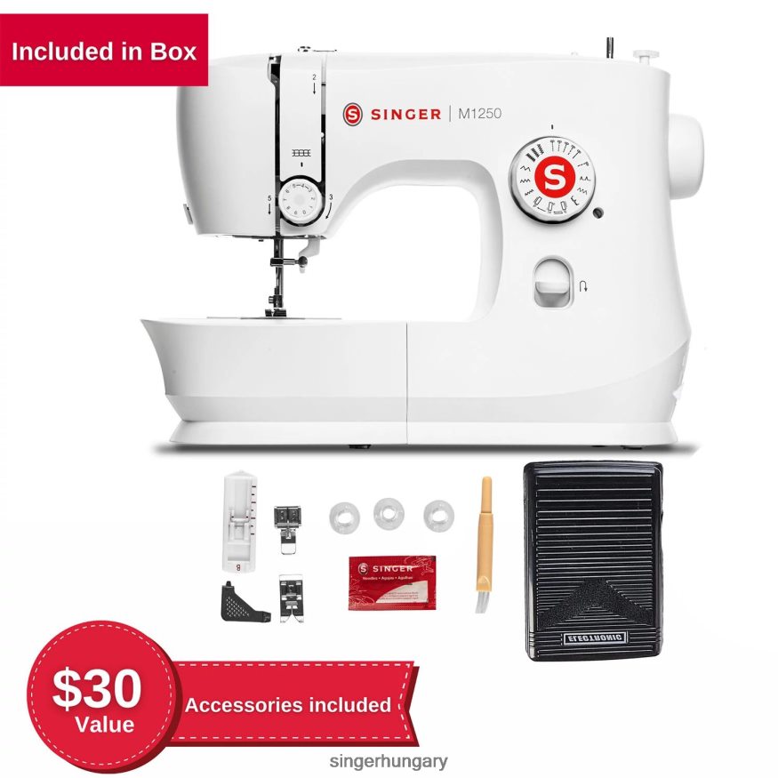 A Singer m1250 könnyű és hordozható, így nagyszerű választás varrási órákra vagy kisebb helyeken történő varráshoz. Könnyű kezelhetőségének köszönhetően, mint például a felső bedobható orsó, 45 öltésalkalmazás, az egyszerű öltésválasztás és az előre beállított öltéshossz és -szélesség, a kezdő és haladó varrógépek könnyen használhatók lesznek. varrjon ruhákat, daraboljon paplanokat, készítsen kézműves alkotásokat vagy végezzen egyszerű javításokat – mindezt megteheti!
