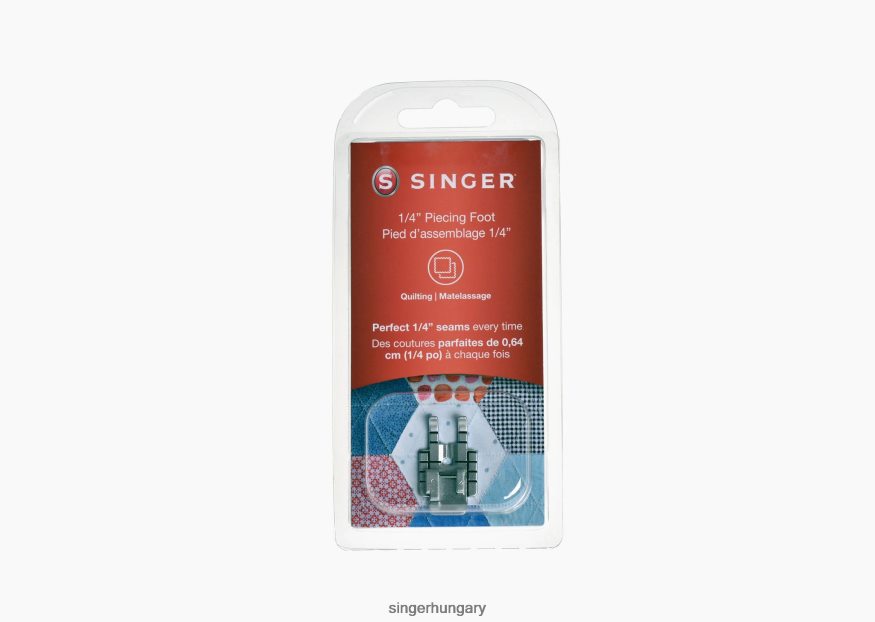 a negyed hüvelykes kiszúrható nyomótalp foltvarrás “varrásráhagyás”, kötelező kellék a paplan felsők darabolásához! használható kis projektekhez, szűk varrásrésekkel, például babaruhák és babaruhák. A piros vezetővonalak a A láb segít a tökéletes sarkok elsajátításában! Csak egyenes öltést használjon ezzel a nyomótalppal, és a varrás előtt fordítsa maga felé a kézi kereket, hogy a tű kiszabadítsa a lábnyílást.