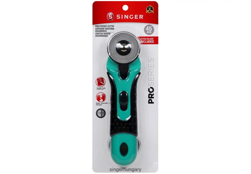 A többi 45 mm-es forgóvágóval ellentétben ez a forgóvágó a kiváló minőségű, vásárlók által áhított professzionális szerszámok sorához csatlakozik. ez a kiváló minőségű pálcás forgóvágó precízen és egyszerűen képes vékony anyagot, vastag anyagot vagy akár több réteg szövetet vagy papírt is átvágni. a masszív puha markolat beépített dudorokkal van felszerelve, hogy megakadályozzák az ujjak elcsúszását. a singer’s ergo forgóvágóként ismert pálcás forgóvágót úgy tervezték, hogy mind az egyenes, mind az íves vágási munkákhoz jól manőverezzen, és bal- és jobbkezes felhasználók egyaránt használhatják.