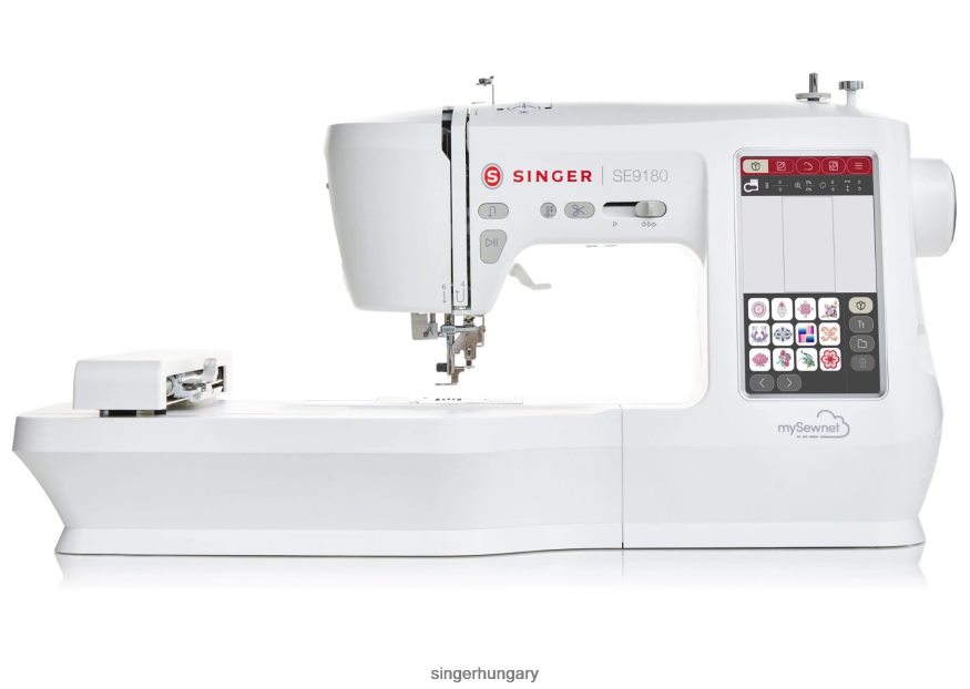 a Singer se9180 varró- és hímzőgép olyan felhasználóbarát funkciókkal van felvértezve, amelyeket a varrók minden szinten szeretnek, mint egy nagy, 7 hüvelykes érintőképernyőt, így Ön tisztán látja, hogy mit varr, és egy automatikus tűbefűző, amellyel pillanatok alatt varrhat. Ezenkívül a mysewnet csatlakozás a lehetőségek egész világát kínálja, kezdve a hímzési folyamatról szóló alkalmazások értesítéseitől a tervek létrehozásáig, és így tovább még sok minden mást. élvezze a mysewnet szoftver 90 napos ingyenes próbaverzióját és a mysewnet könyvtárat, amely több ezer minta közül választhat. A több mint 150 beépített hímzőmintával és több mint 250 öltéssel mindkét világból a legjobbat hozza ki az énekes se9180 varró- és hímzőgép.