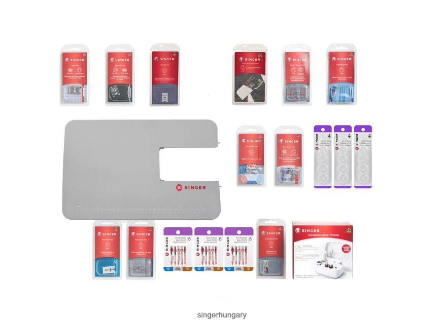 Nagy teherbírású számítógépes gépek tulajdonosai, tökéletes tartozékcsomagunk van az Ön számára! Ez a köteg egy hosszabbítóasztallal, orsótekerccsel, 11 nyomótalpat, 3 csomag tűt és 3 csomag orsót tartalmaz, ez a köteg minden típusú varráshoz kiváló.